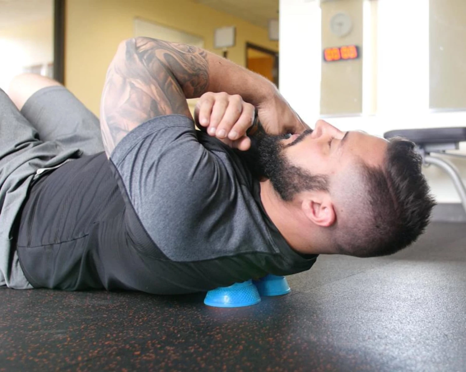 The Level 2 ball can be used safely on any flat surface or manipulated by hand, working trigger points from the neck to the feet. You can also set up two ACUMOBILITY Balls for high-intensity lateral compression workโthe spacing is perfect for rolling along the spine.
