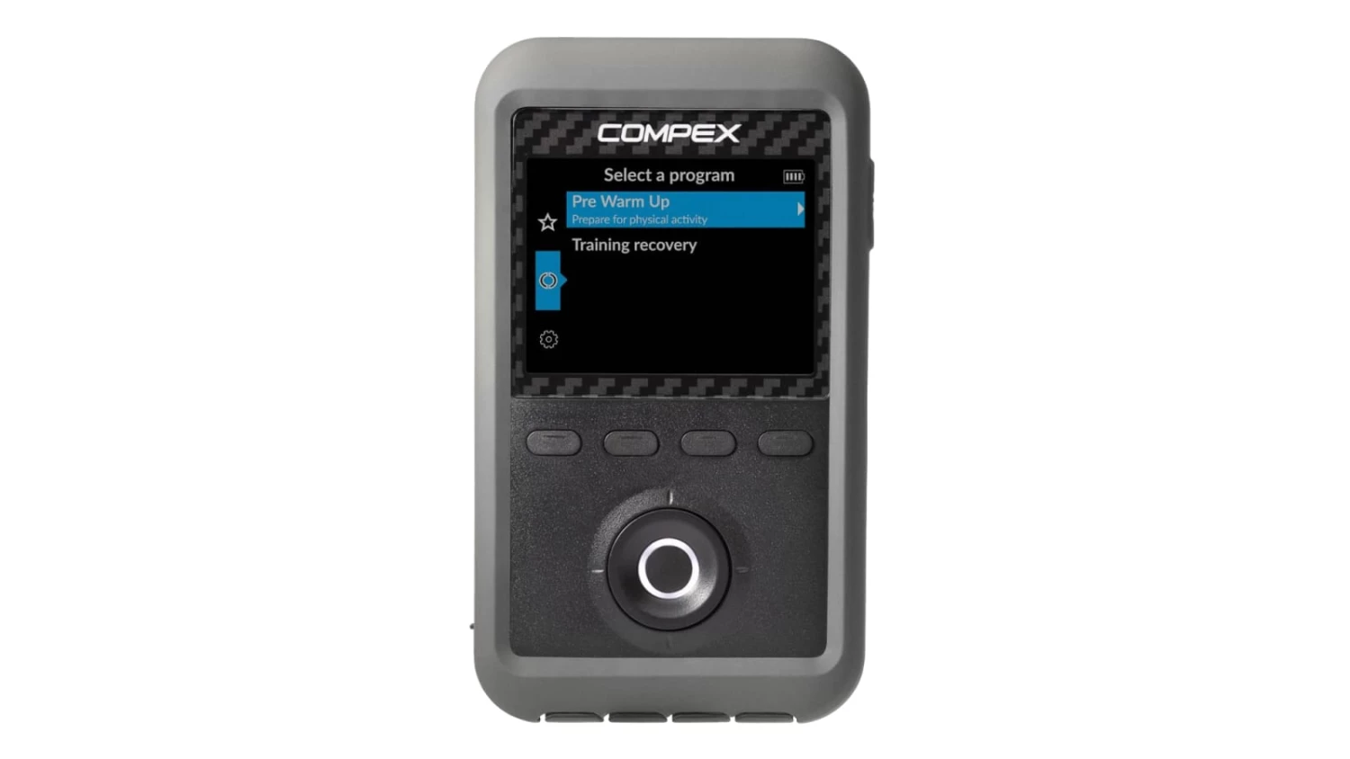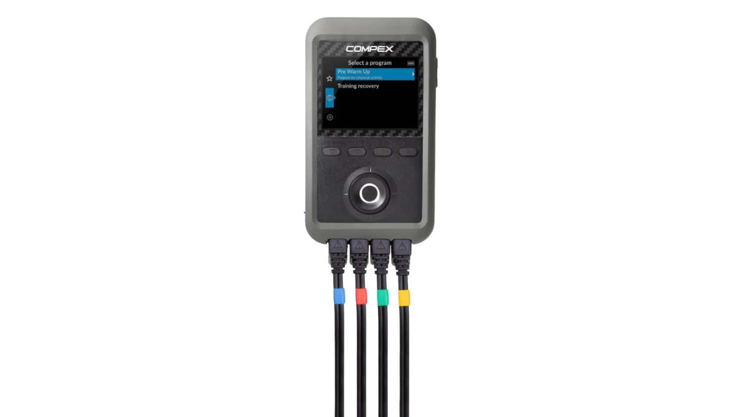 Version 3.0 of the Compex Performance Muscle Stimulator introduces a range of new features, including a water-resistant silicone grip sleeve, improved LCD display, a convenient center navigation button, integrated pad placement suggestions, and a lithium ion battery delivering up to 8 hours of stimulation. This advanced electrode device also now comes with 6 preset programs (including a new TENS kit) designed to stimulate healthy muscles and help facilitate and improve muscle performance.