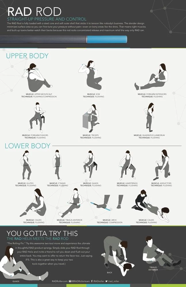 Used in tandem with a RAD Roller or other recovery tools, the RAD Rod can help reduce muscle and joint tightness after a workout, and may also limit the risk of injury over time.