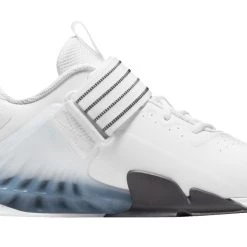 Available here in White / Black / Iron Gray, Nikeโs Savaleos Weightlifting Shoe is optimized for max stability on the heaviest lifts, with a hook-and-loop strap that locks down the midfoot and an elevated heel for superior balance. The flat, wide sole makes a solid base under pressure, and the rigid midsole construction delivers excellent power transfer from the ground; vital for explosiveness.