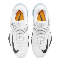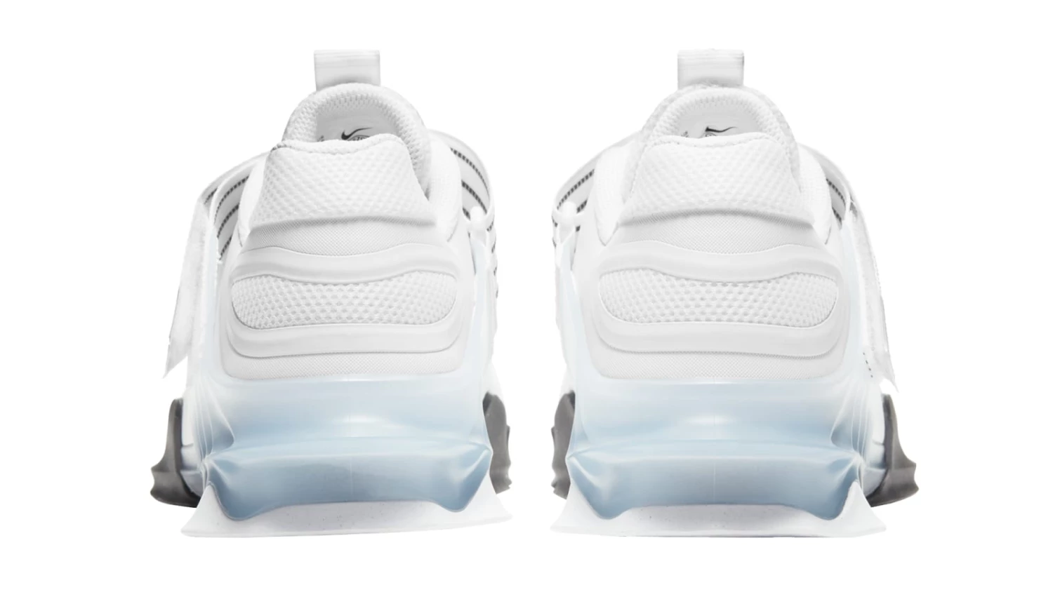 The Savaleos also includes padded mesh inset at the heel for breathability and impact absorption, and a padded tongue and collar with โNike Weightliftingโ branding.