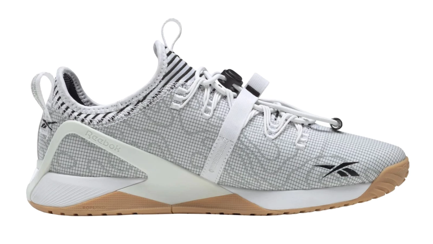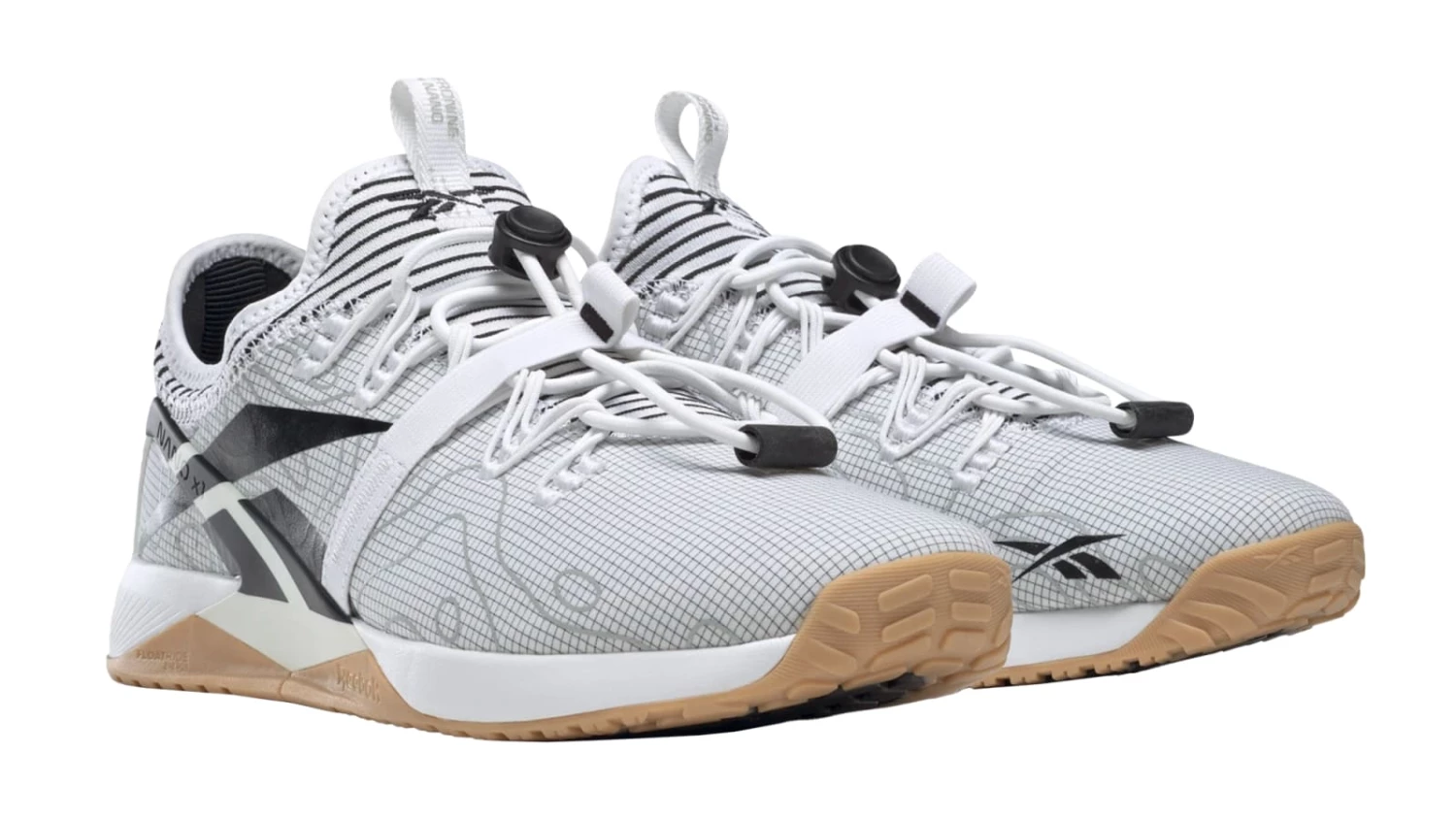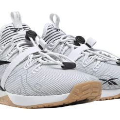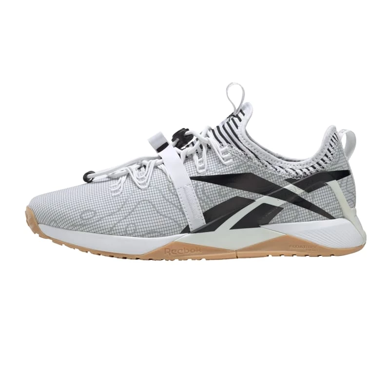 The Froning edition of Reebokโs Nano X1 Training Shoe was co-developed with the 4x โFittest Man on Earthโ himself, Rich Froning, Jr. The White / Core Black design includes a sock-like flexweave construction for a locked-in fit, an โInto the Stormโ graphic inspired by the bison on Richโs Tennessee farm, and a 3-part bungee lace closure.