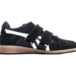 The Do-Win Classic Lifter includes a suede and mesh upper with a rounded toe shape (just like the old-school version had). Two hook-and-loop tarsal straps + nylon webbing backers ensure a firm, custom fit, and each heel is crafted from stacked layers of genuine leather. Like the originals, the effective heel-to-toe drop of the Do-Win is approx. 0.75โ (19mm).