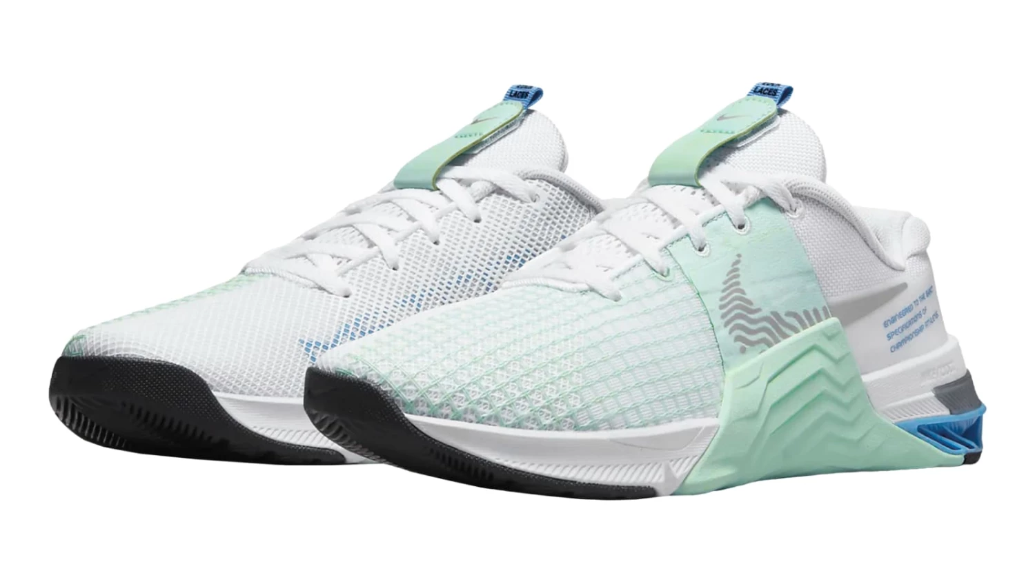 The Metcon 8โs lightweight mesh and strategically textured overlays keep your feet cool without sacrificing durability. Rubber tread on the outsole and up the side of the shoe provides directional traction from the training room floor to the pavement, and flywire cables integrate with the laces to secure the midfoot.