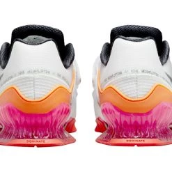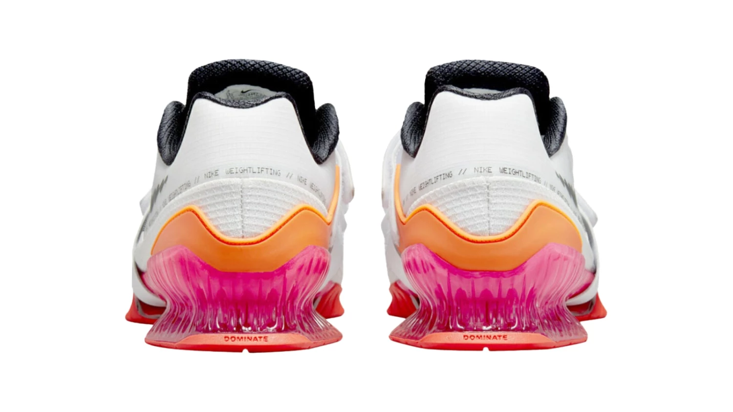 This updated design features a supportive midsole and a wide, flat outsole, with adjustable straps over the laces at the midfoot to secure the foot during high-intensity workouts. The substantial heel-to-toe drop reduces the ankle flexion needed at the bottom of a lift, andโcombined with the rigid midsoleโenables greater explosiveness off the ground.