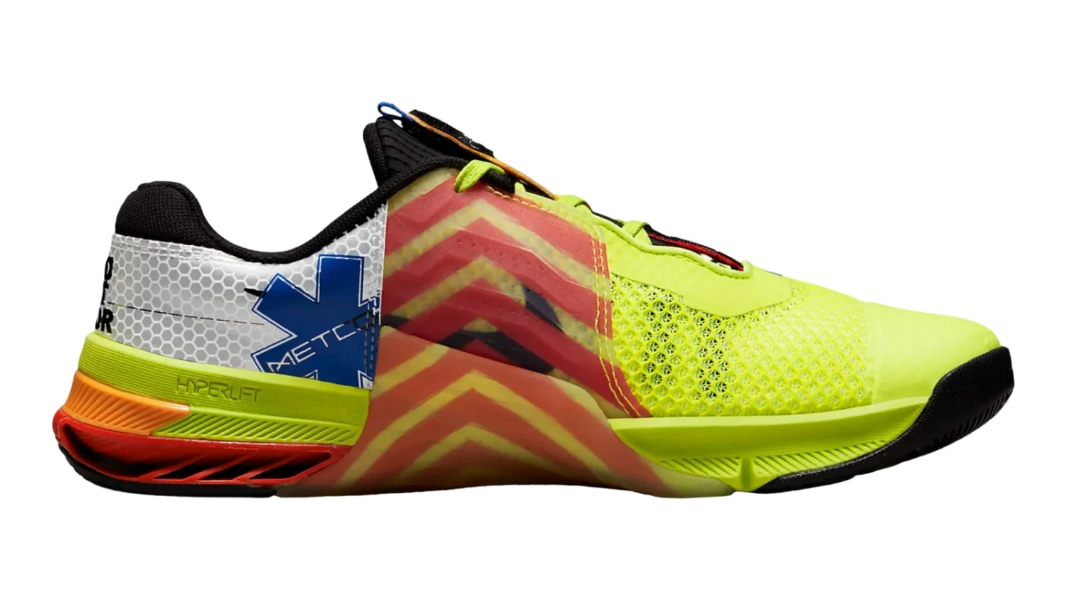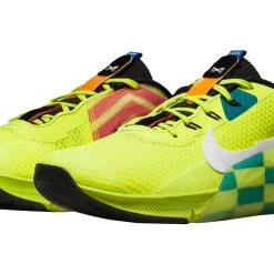 The AMP version of the Nike Metcon 7 is available here in Volt / Black / Bright Spruce / White.