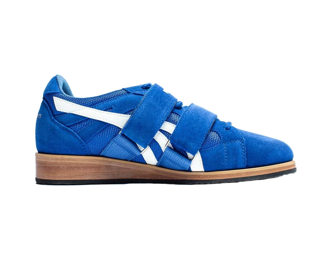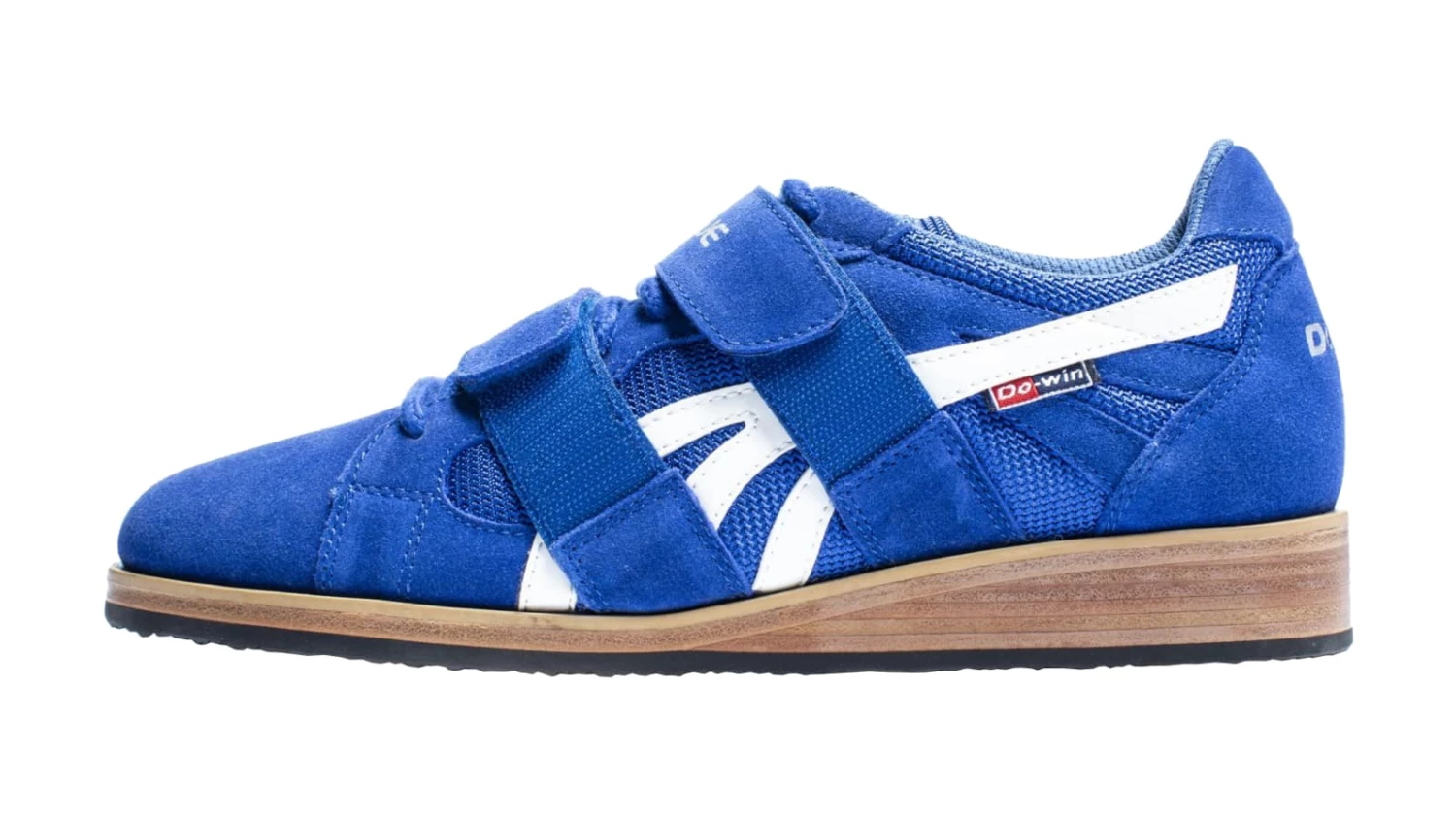 The Do-Win Classic Lifter includes a suede and mesh upper with a rounded toe shape (just like the old-school version had). Two hook-and-loop tarsal straps + nylon webbing backers ensure a firm, custom fit, and each heel is crafted from stacked layers of genuine leather. Like the originals, the effective heel-to-toe drop of the Do-Win is approx. 0.75โ (19mm).