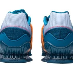 This updated design features a supportive midsole and a wide, flat outsole, with adjustable straps over the laces at the midfoot to secure the foot during high-intensity workouts. The substantial heel-to-toe drop reduces the ankle flexion needed at the bottom of a lift, andโcombined with the rigid midsoleโenables greater explosiveness off the ground.