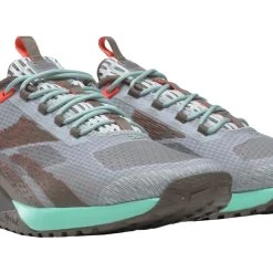 The Womenโs TR Adventure edition of the Reebok Nano X1 is optimized for everything from a boot camp in the park to bodyweight exercises at the campground. Available here in Pure Gray 2 / Trek Gray / Hint Mint, this all-purpose training shoe includes a soft Flexweave knit construction with a comfort collar, delivering all-day breathability and locked-in wearability with no break-in time required out of the box.