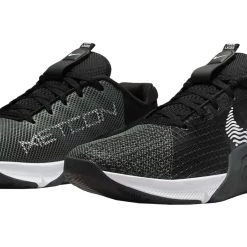 The Metcon 8โs lightweight mesh and strategically textured overlays keep your feet cool without sacrificing durability. Rubber tread on the outsole and up the side of the shoe provides directional traction from the training room floor to the pavement, and flywire cables integrate with the laces to secure the midfoot.